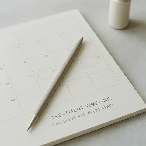 For optimal collagen stimulation, we recommend a series of three PRF microneedling treatments, spaced 4–6 weeks apart.